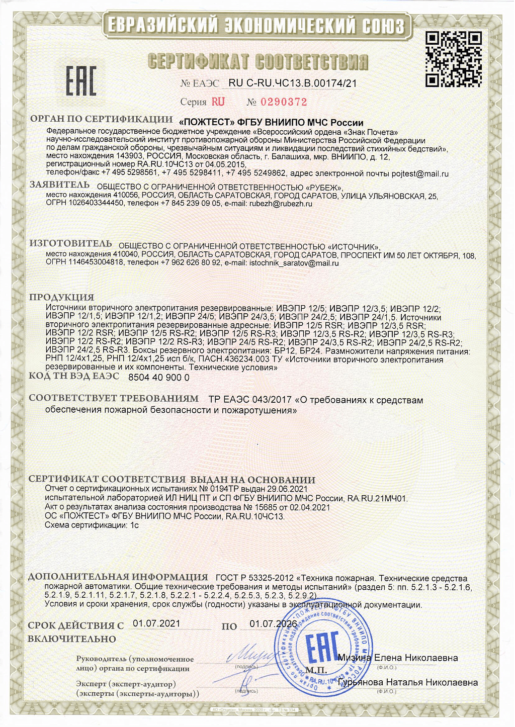 Источник питания номинальным постоянным напряжением 24 В и выходным током до 2,5 А. Предназначен для стабильного бесперебойного электропитания систем охранной и пожарной сигнализации, пожаротушения, дымоудаления и оповещения.