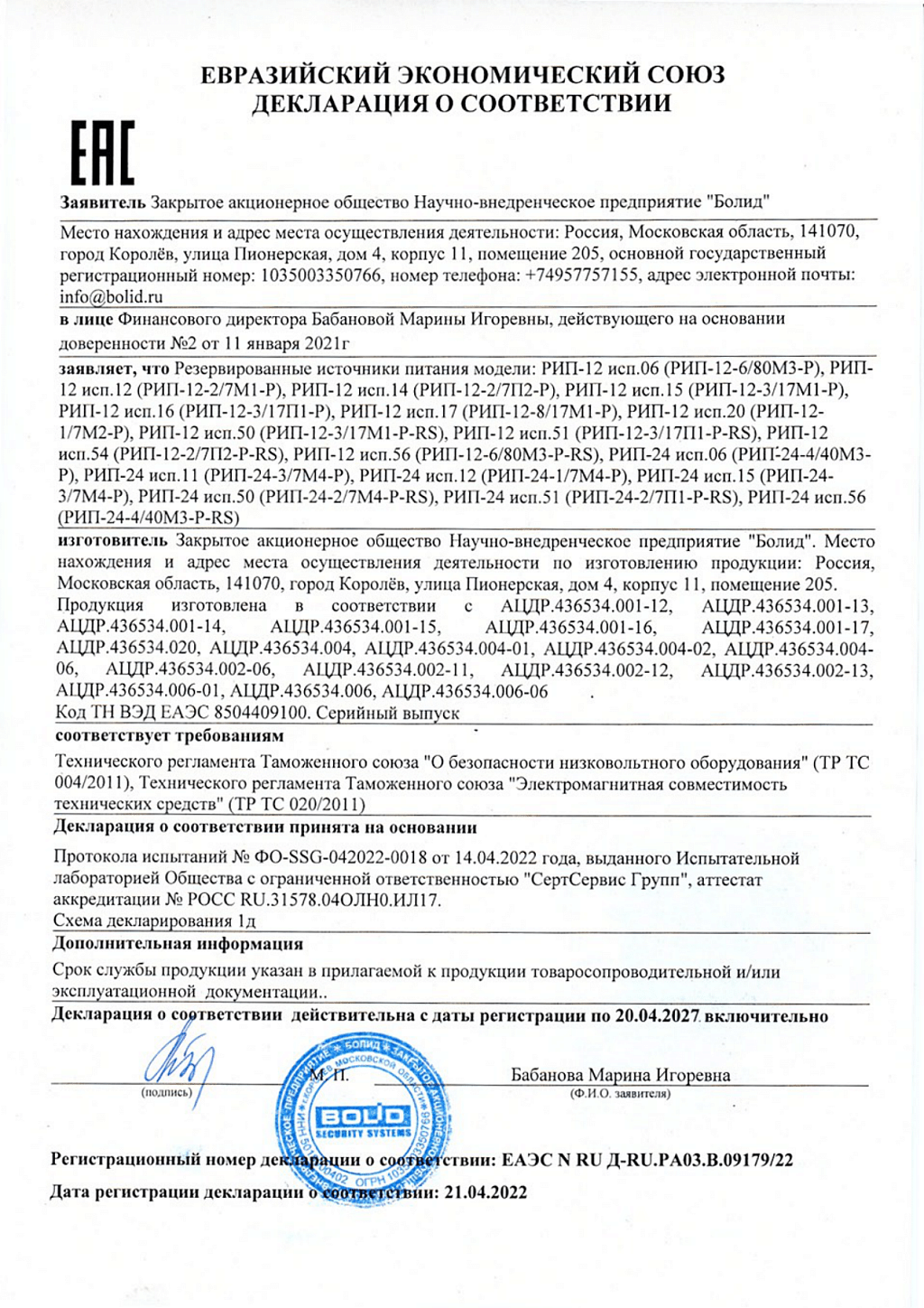 • Производитель BOLID