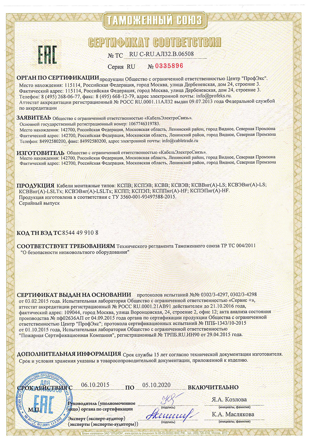 Производитель: Кабельэлектросвязь