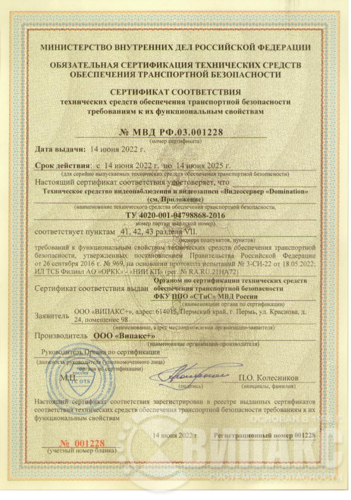 Видеосервер Domination Hybrid-16-IP9-L-MDR – Реестровый номер 10423912 (Реестр российской промышленной продукции (ПП РФ 719 от 17.07.2015).