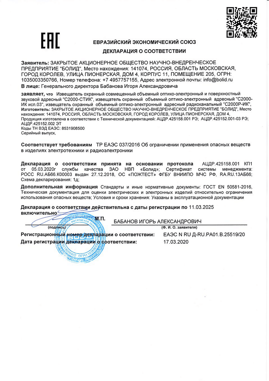 С-2000Р-ИК используется в системах охранной сигнализации, предназначен для обнаружения проникновения в охраняемое пространство закрытого помещения. Используется совместно с расширителем "С2000Р-АРР32", "С2000Р-АРР125". Особенности прибора: извещатель имеет четыре уровня чувствительности инфракрасного датчика; извещатель рассчитан на непрерывную круглосуточную работу и относится к восстанавливаемым, периодически обслуживаемым изделиям; извещатель имеет встроенный заменяемый источник питания; в извещателе осуществляется контроль вскрытия корпуса, контроль состояния источника питания, контроль качества радиосвязи и электромагнитная совместимость извещателя соответствует требованиям по 3 группе устойчивости.