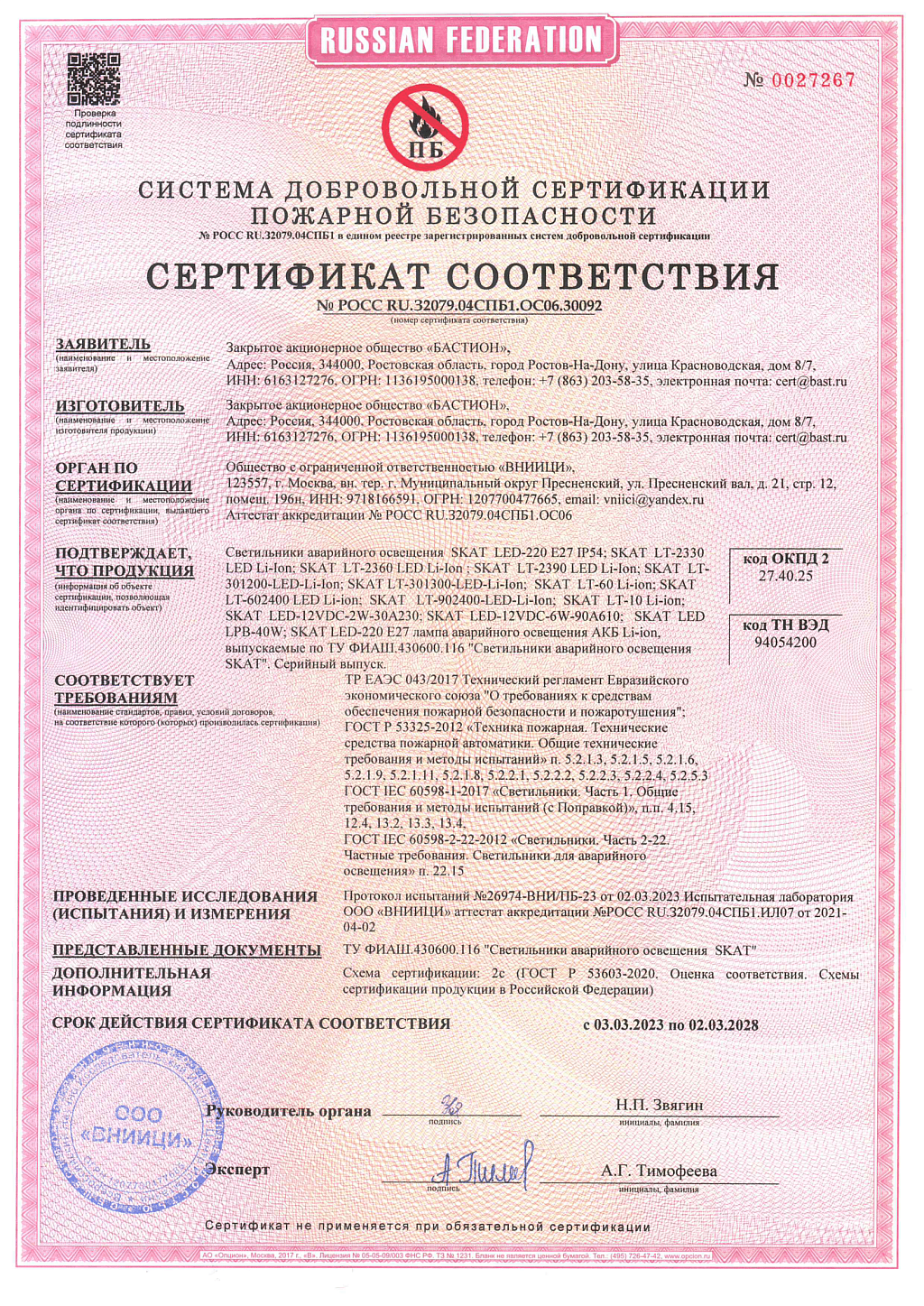 Лампа аварийного освещения SKAT LT-301300 LED Li-ion производителя Бастион - прибор, который используется для аварийного освещения при отсутствии напряжения в сети. Освещение обеспечивается 30 светодиодами, которые работают от аккумуляторной батареи Li-ion.