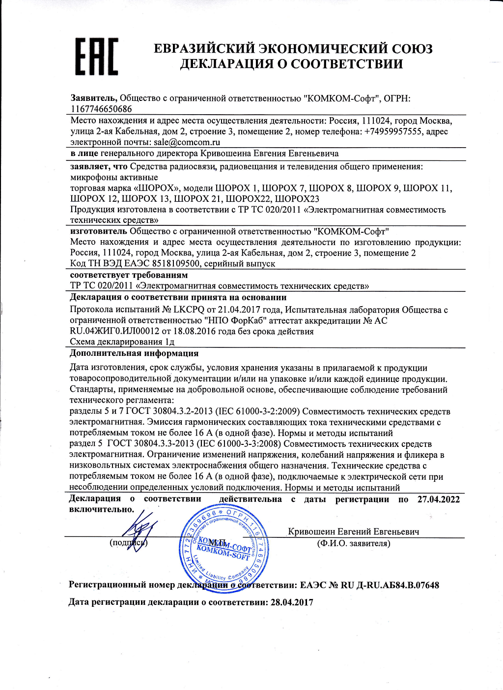 Микрофон ШОРОХ-13 КОМКОМ купить в Перми в компании ВИПАКС.