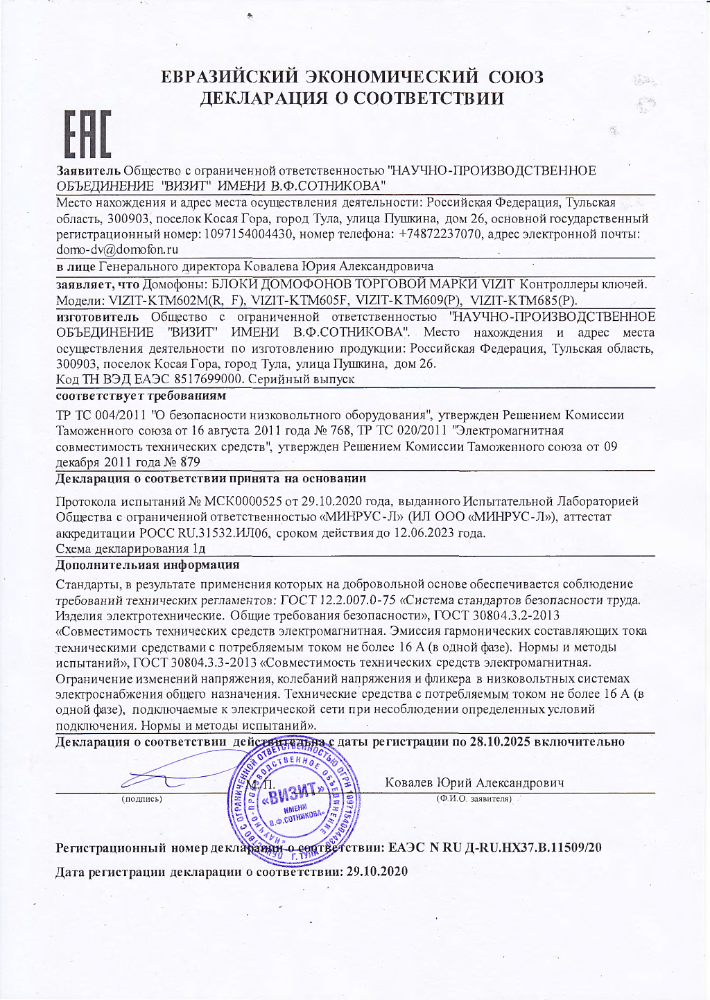 Монитор домофона M427C Vizit купить в Перми в компании ВИПАКС.