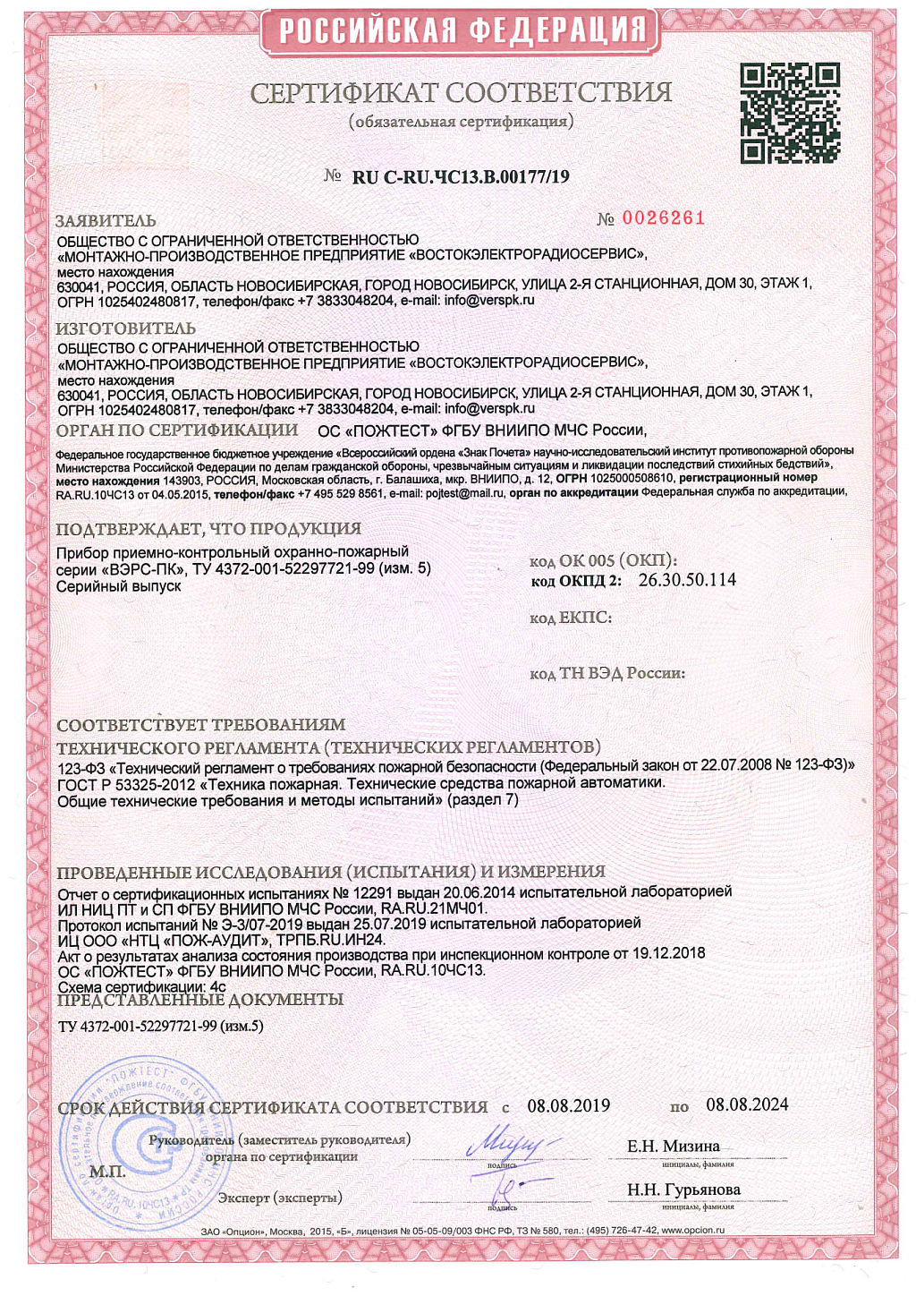 Прибор ВЭРС-ПК8 Версия 3.2, обеспечивает на объектах охрану от проникновения, пожарную охрану, контроль доступа, световое и звуковое оповещение. Прибор может быть использован как автономно, так и в составе централизованных систем охраны. ВЭРС-ПК-8 имеет высокоэффективный импульсный источник питания, поддерживает полноценную работу с глубоко разряженной АКБ. Прибор оснащен встроенным интерфейсом USB для загрузки и считывания конфигурации. ВЭРС-ПК-8 контролирует состояние шлейфов сигнализации (ШС) с подключенными к ним охранными, пожарными или технологическими извещателями. Устройство выполнено в пластмассовом корпусе.
