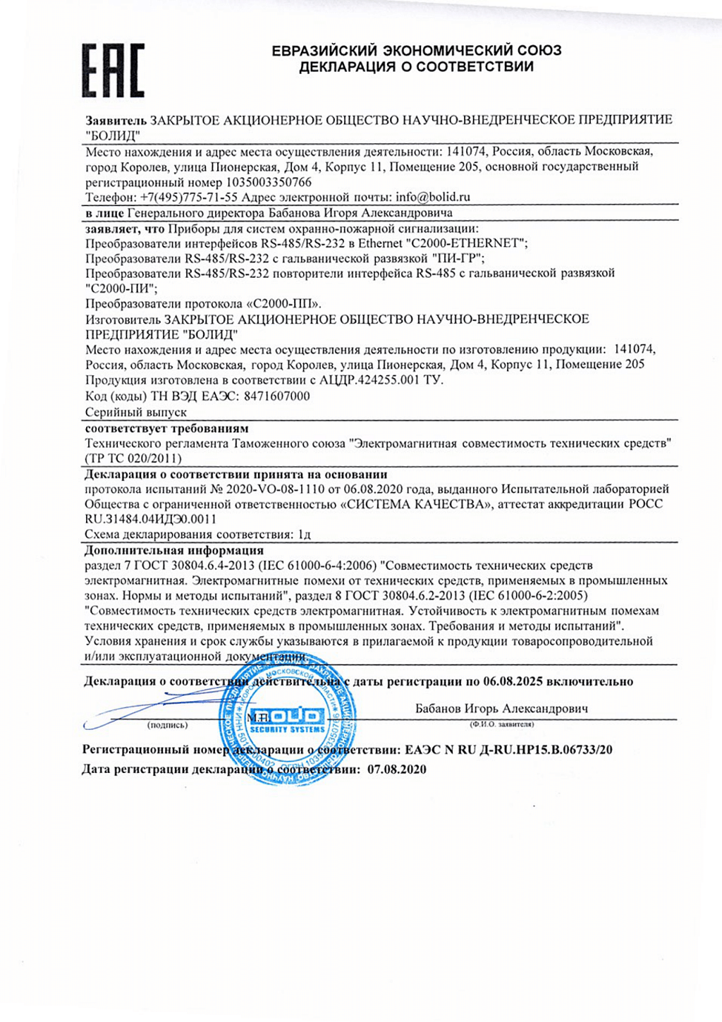 Преобразователь С2000-ПП BOLID купить в Перми в компании ВИПАКС.