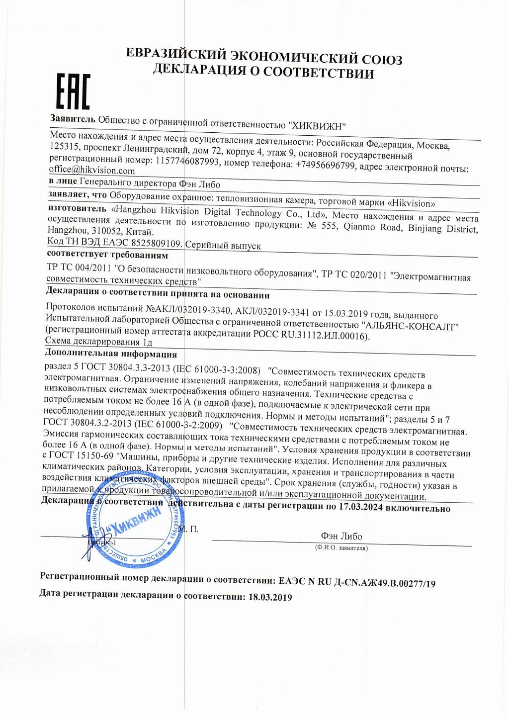 Тепловизионная IP-камера цилиндрическая; Неохлаждаемый микроболометрический детектор; 160×120 - 25к/с; 6.2 мм; измерение температуры в диапазоне +30...+45°C с точностью ±0.5°C; H.264; H.265; MJPEG; Аудио вх/вых -1/1; Микрофон; Тревожный вх/вых - 2/2; композитный выход (75 Ом/BNC); RS-485; MicroSD 128 Гб; DC 12/PoE; 10 Вт; IP66; +10...35°С; 358.3×113.5×115.2 мм.