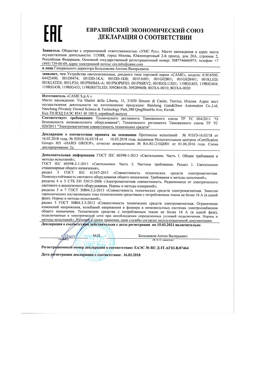 Лампа 001KLED сигнальная (светодиодная) 230 В CAME купить в Перми в компании ВИПАКС.