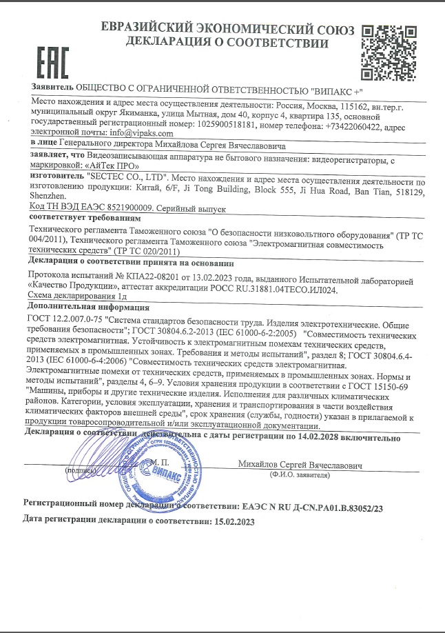• Формат видеосжатия H.264 / H.265 / Н.265+ / Н.265X